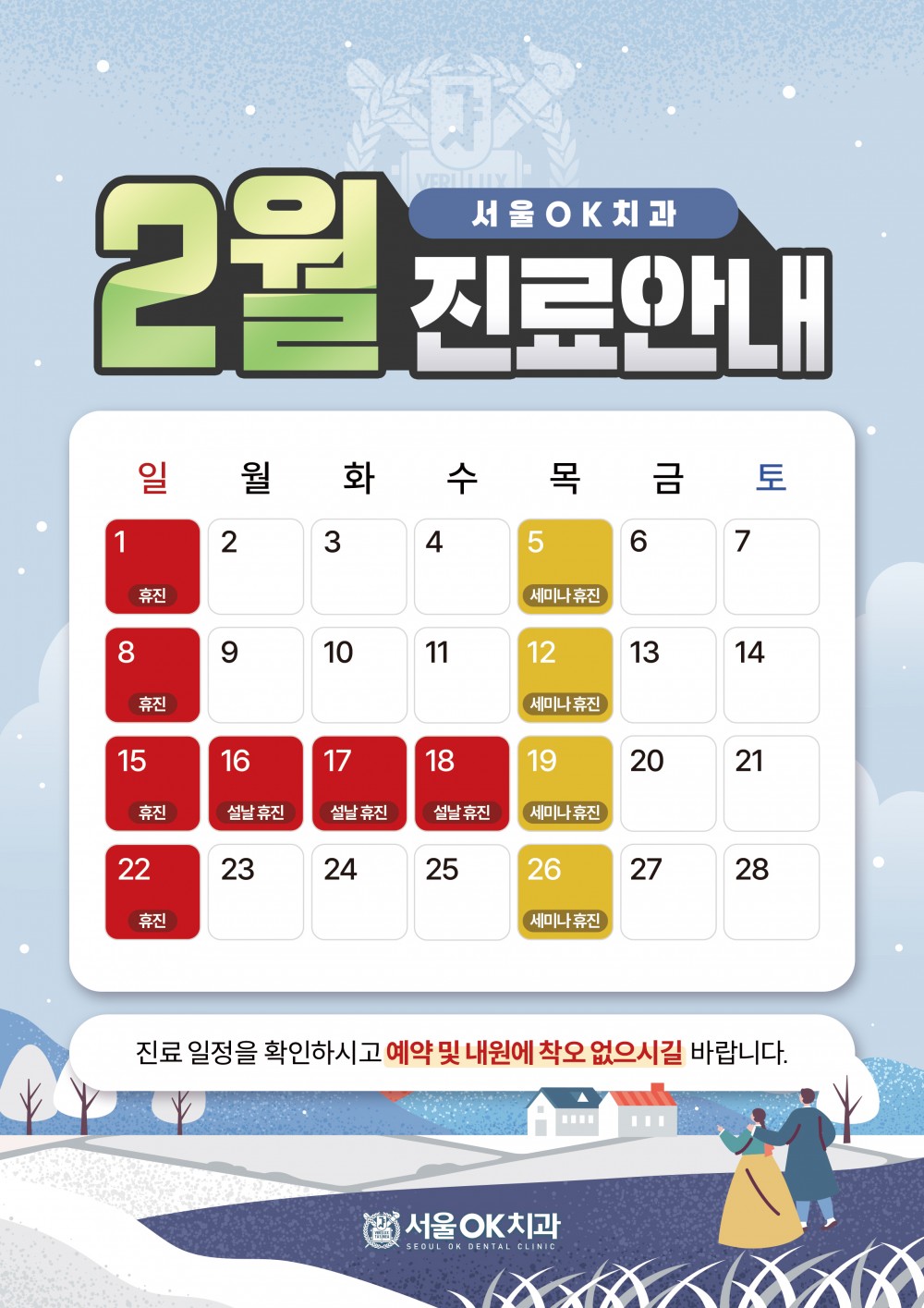 서울OK치과 2월 진료일정 안내 > 공지사항